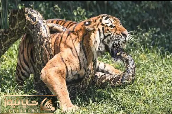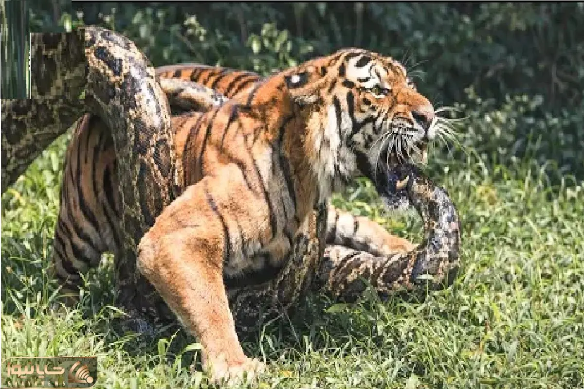 مستند حیات وحش / پیتون غول پیچید دور پیکر ببر سانتش بزنه برای بلع