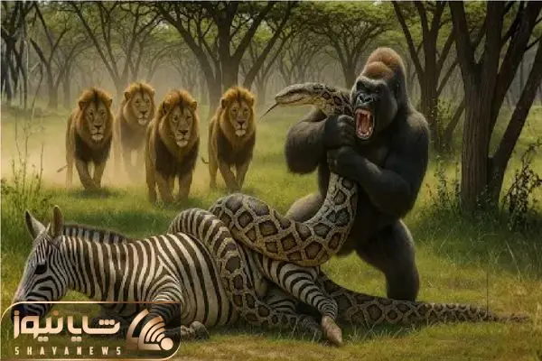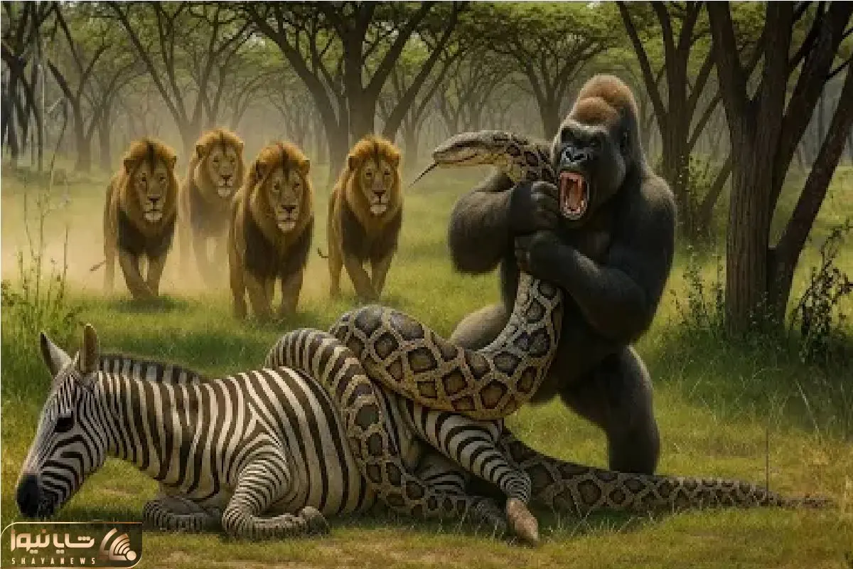 حیات وحش مصنوعی؛ گوریل جسور خر راه راه رو از حلقه مرگ پیتون نجات میده