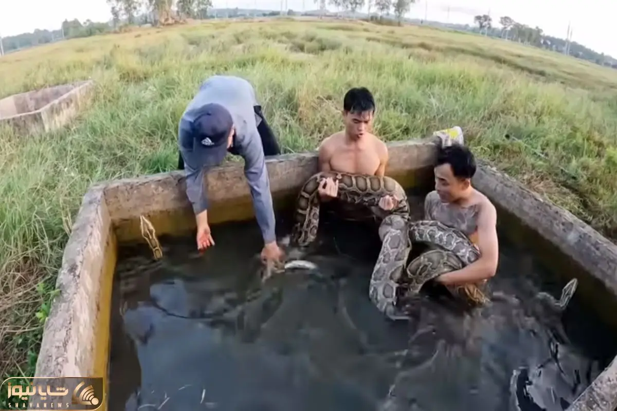 جذابیت های حیات وحش؛ نبرد آقاهه و رفقای کله خرش با پیتون غول تو استخر