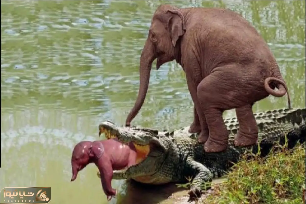 جذابیت حیات وحش؛ فیل میشینه رو تمساح دهنش وا شه بچشو بکشه بیرون