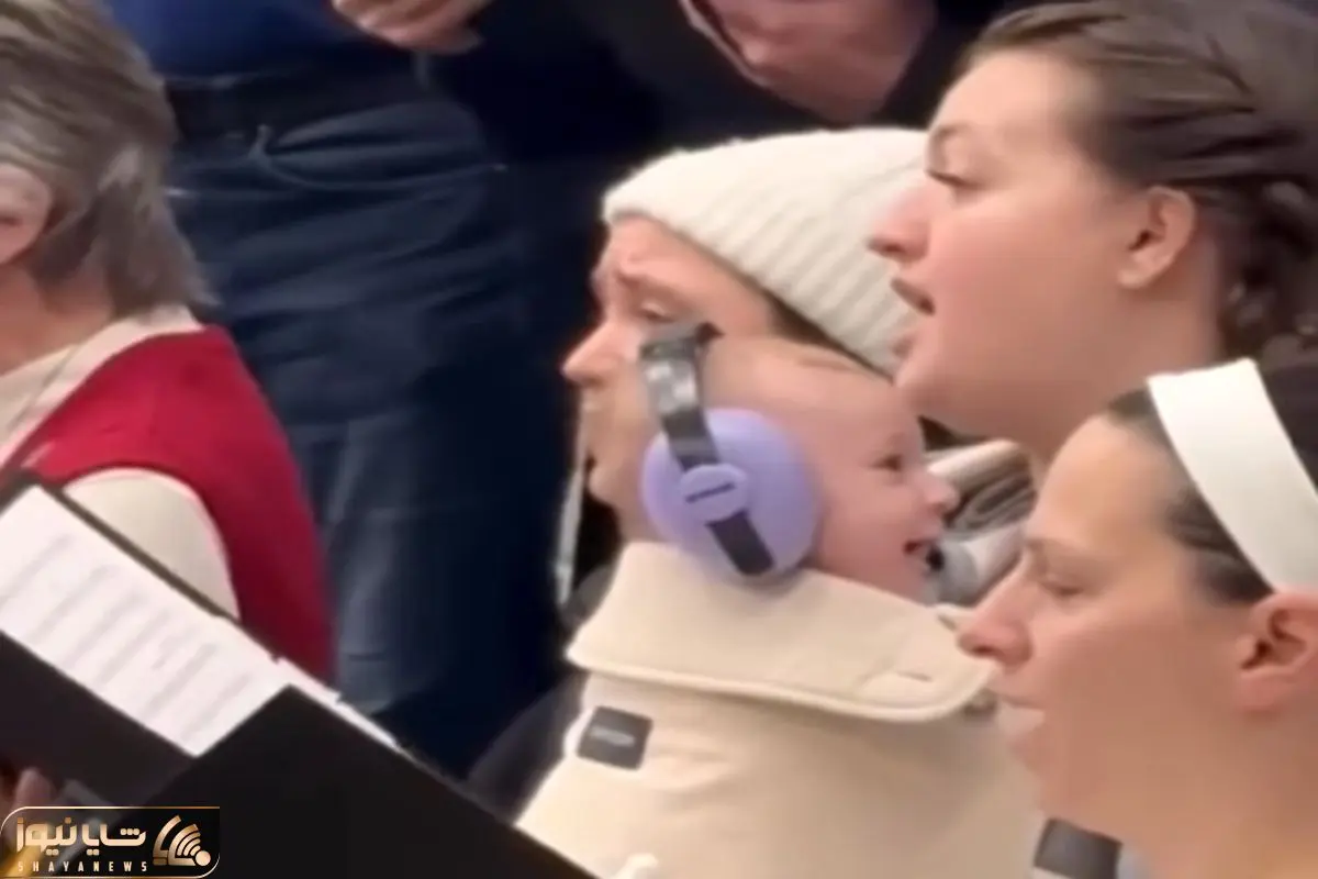 آواز شاد؛ مامانه نوزاد چهار ماهشو بقچه کرده تو بغلش آهنگ میخونه واکنشای نی نی عالیه