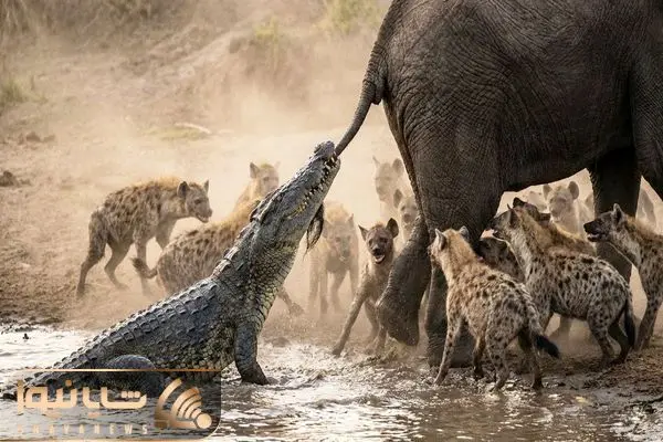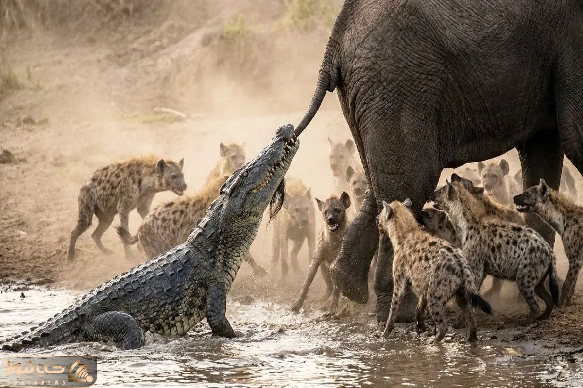 مستند حیات وحش؛ فیلی که گرفتار کفتار و کروکودیل شد