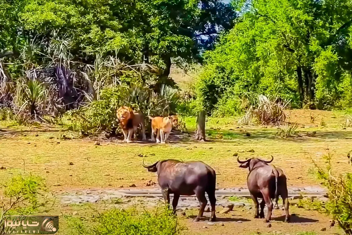 مستند حیات وحش؛ بوفالویی که سر بالا و بی اعتنا بین شیرها قدم می زنه