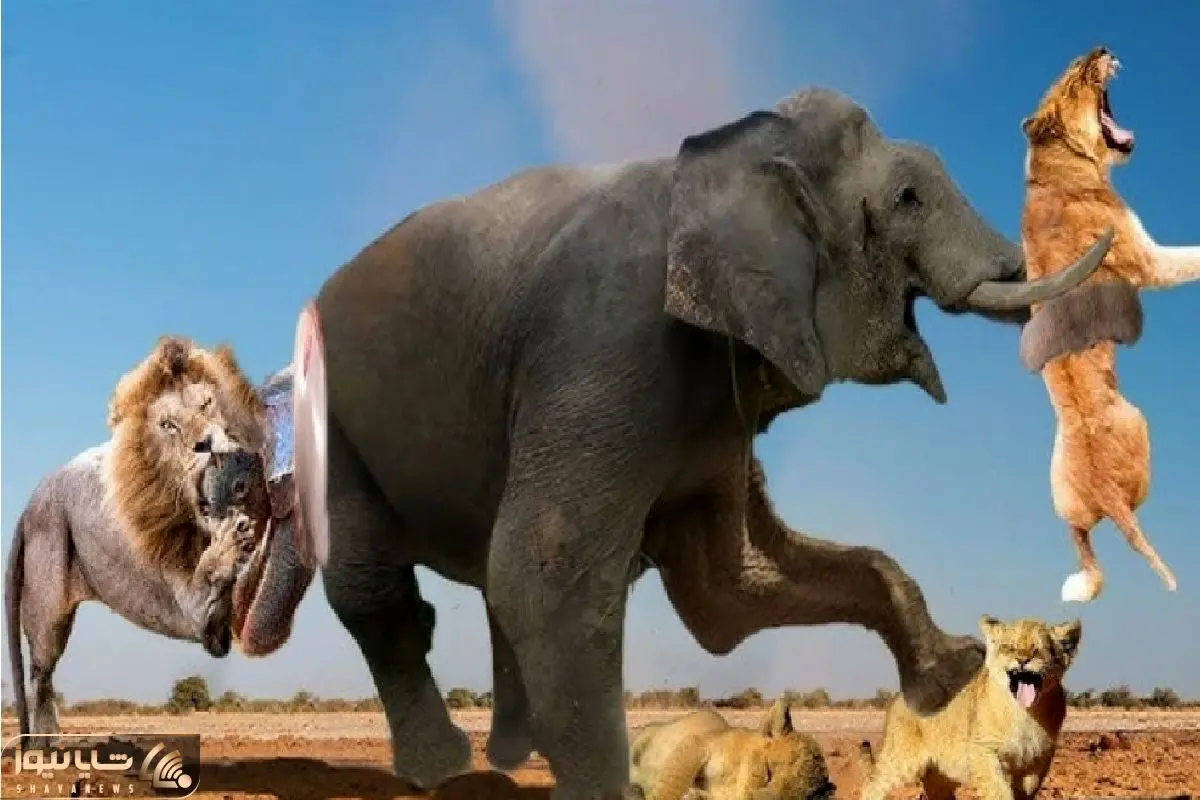 کلیپی از بچه فیلی که از ترس فیل فرار میکنه تا مادرش میرسه و بعد شیر فرار میکنه