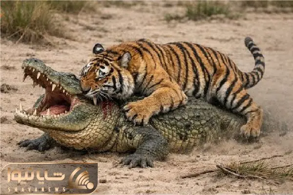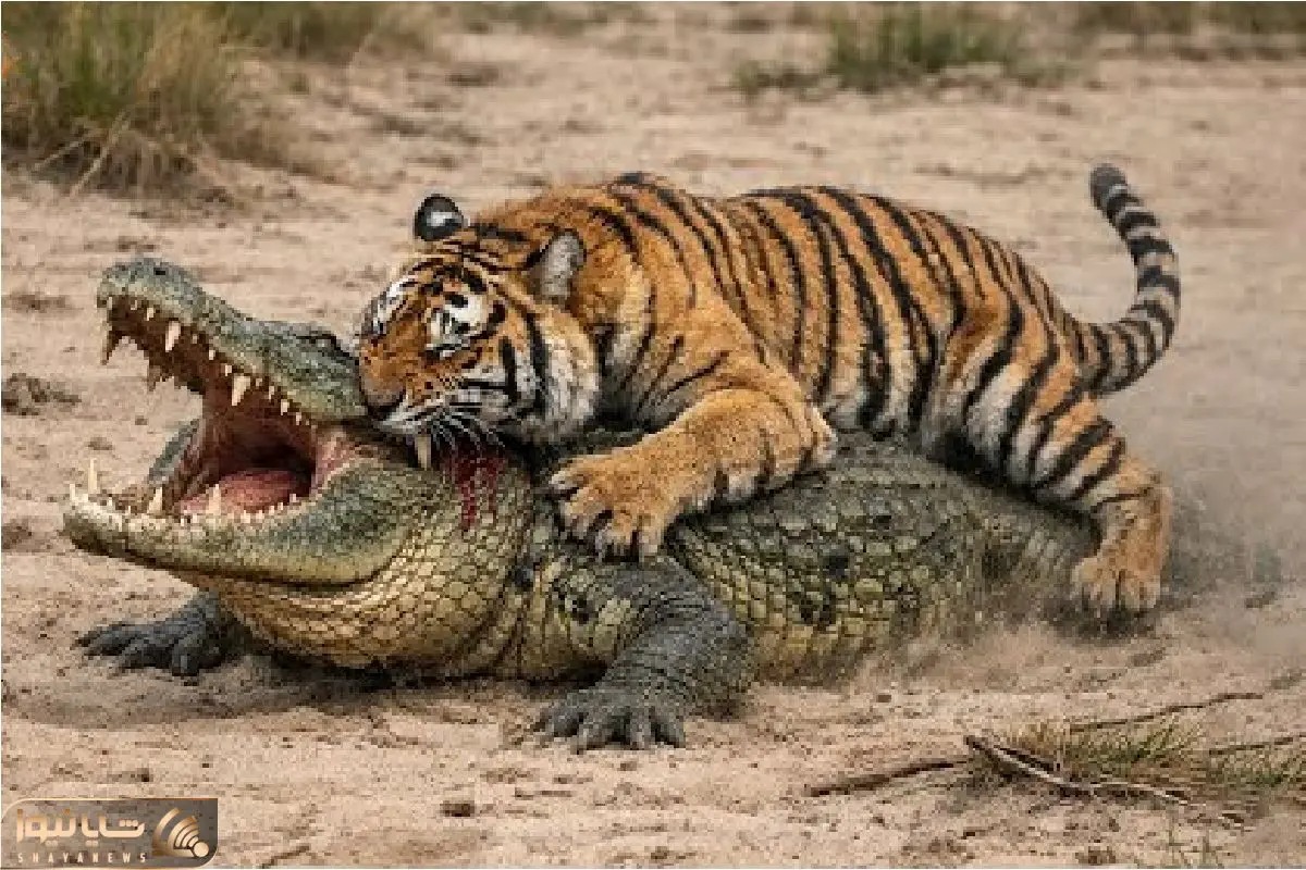 مستند حیات وحش؛ وقتی گوشت تمساح زیر دندان های ببر ریش ریش می شود