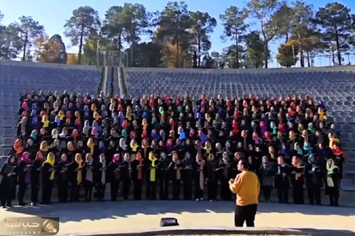 آواز گروهی؛ 100 تا خانوم با لباس زیبا هماهنگ من از خدامه مهستی رو می خونن