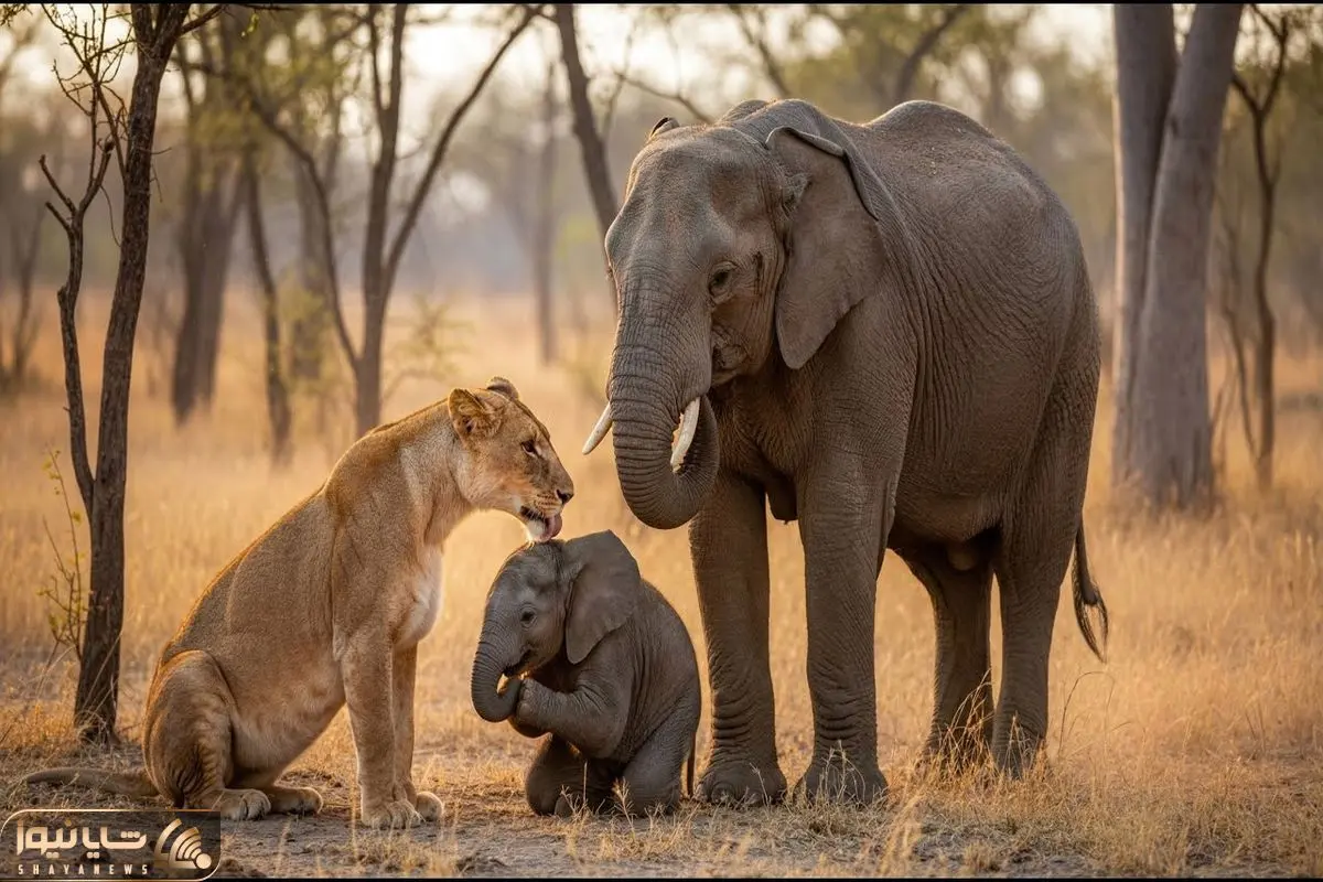 مستند حیات وحش؛ شیر بچه فیل رو نه تنها نخورد کلی هم ناز و نوازشش کرد