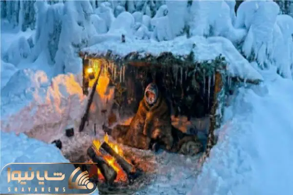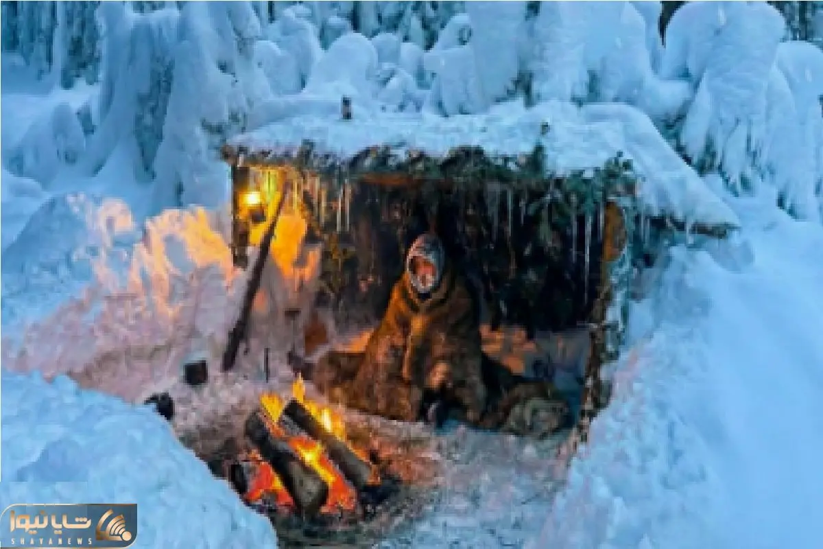 کمپ سولو در اعماق جنگلهای زمستانی در یخبندان منفی 12 درجه سانتیگراد با سگ شیدو و برپایی پناهگاه از شاخه درختان جنگلی را مشاهده می کنید.