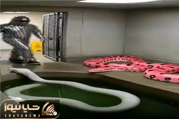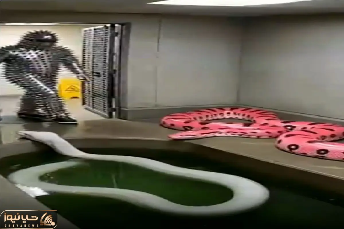 لحظه‌ای نفس‌گیر در باغ‌وحش؛ مردی با لباس یا تیغ‌های عجیب مقابل یکی از خطرناک‌ترین مارهای جهان، آناکوندا، قرار گرفت.