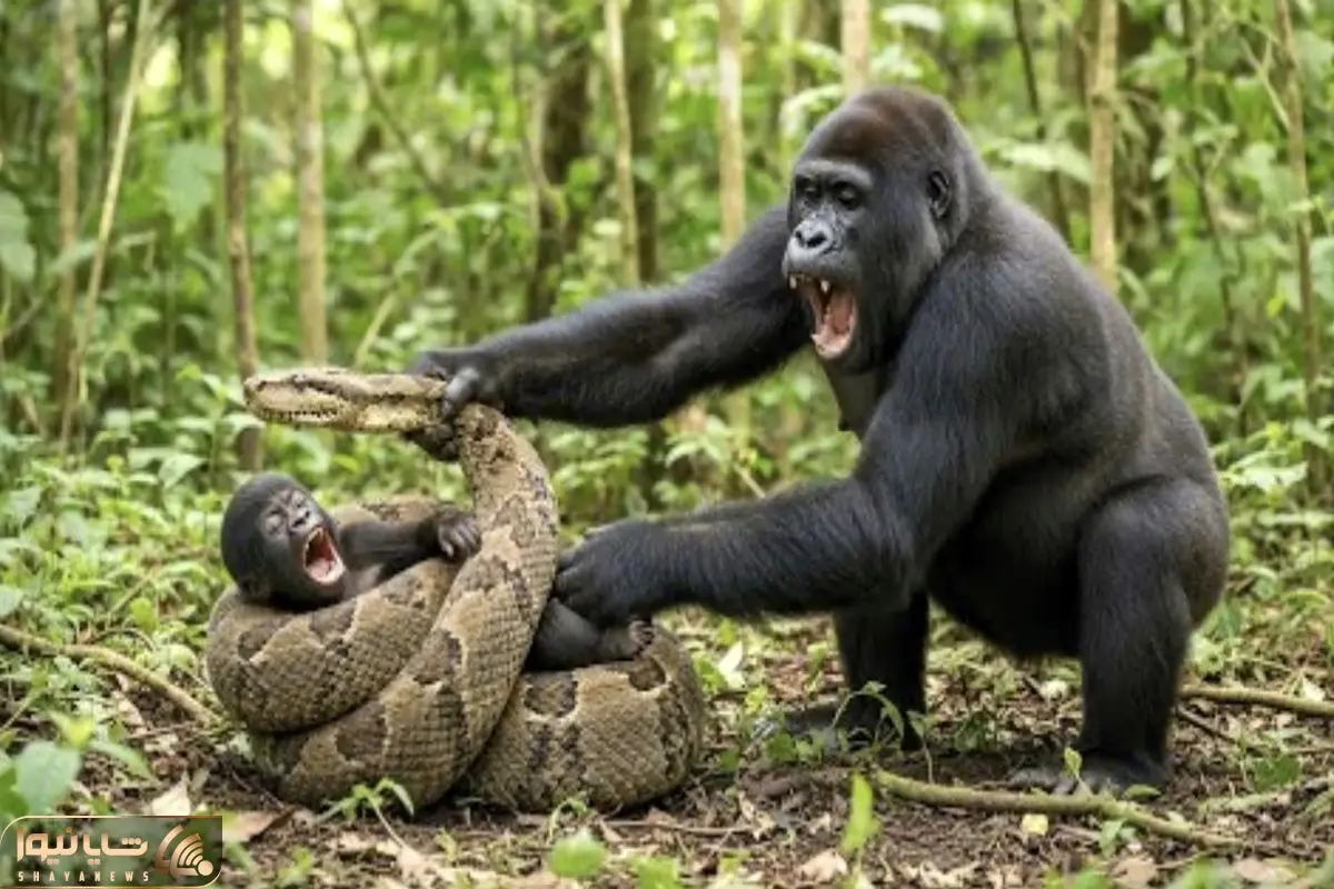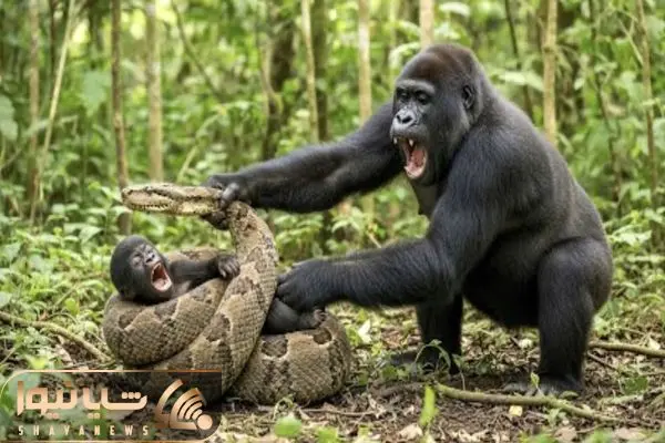 بر مدار وحش؛ گوریل ددمنش پیتون غولی که درحال بلعیدن بچه اش بود نصف کرد