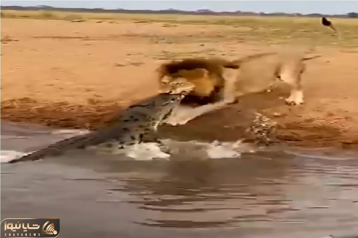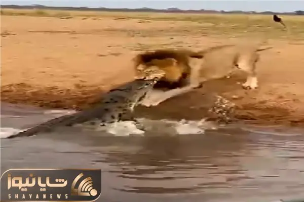شاهد ویدیویی از جنگ کوتاه میان شیر و تمساح هستید