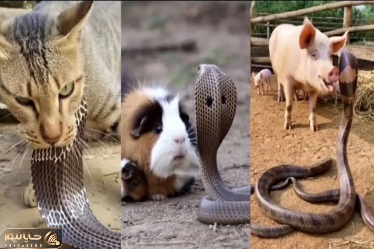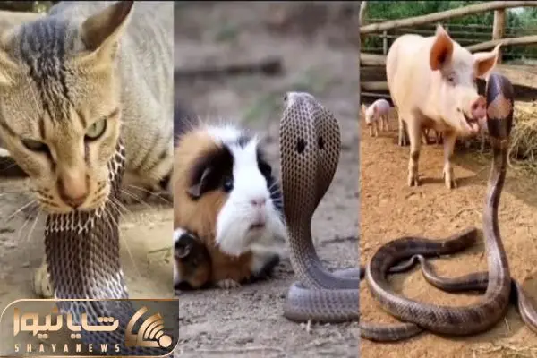 قلمرو حیوانات؛ ایستادگی گربه، خوک و حتی سگ برای حفظ توله ها مقابل مار