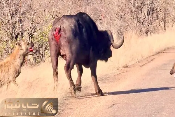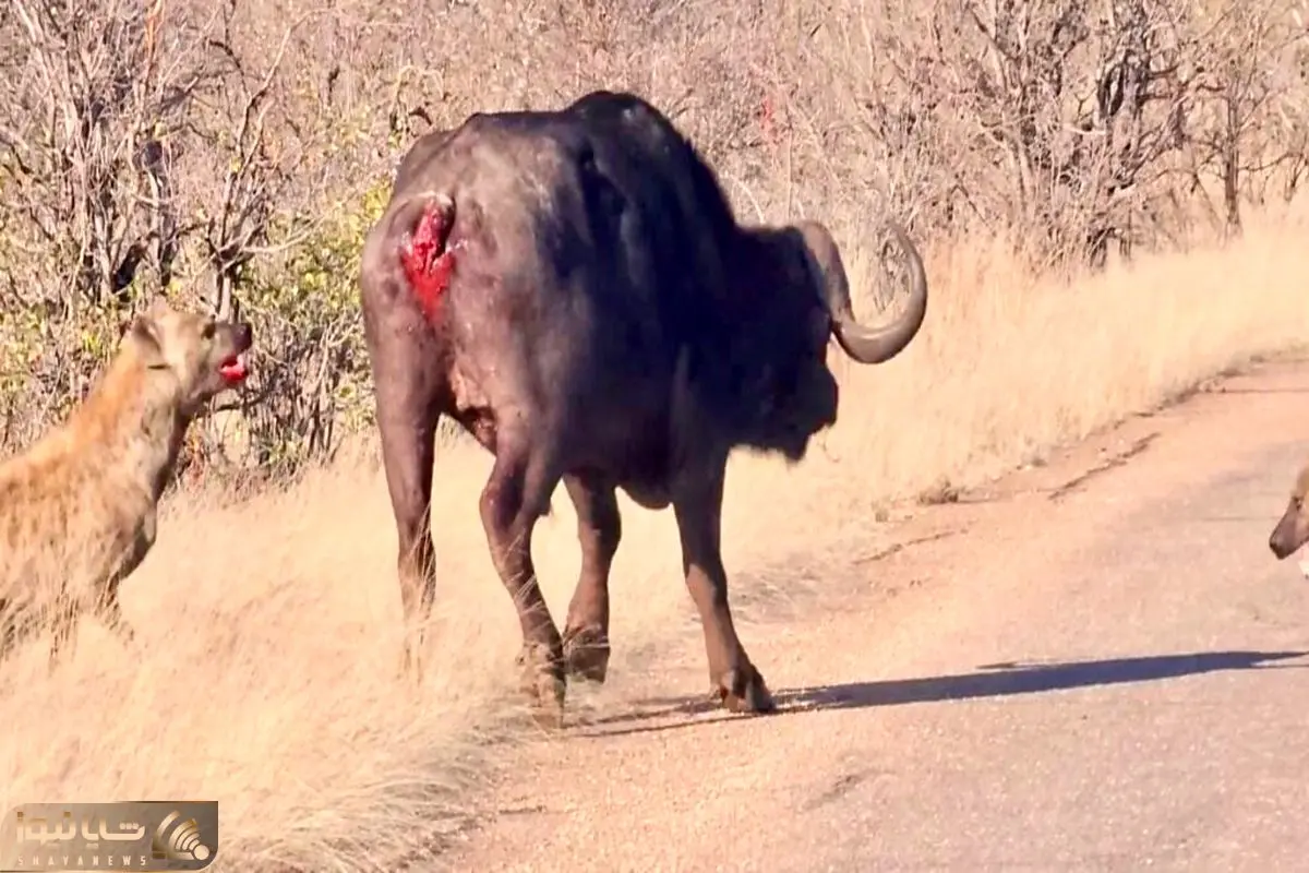 بوفالو برای اینکه بتونه خودش را از مهلکه هولناک کفتارها رها کند مجبور شد به ازدست دادن دم تن دهد