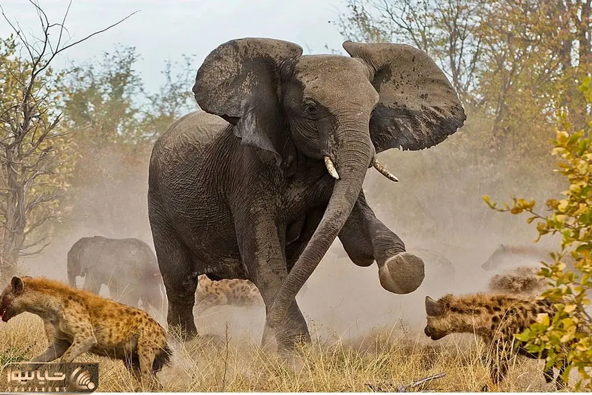 حمله کفتار ها به یک فیل برای سیر کردن گله را می بینید