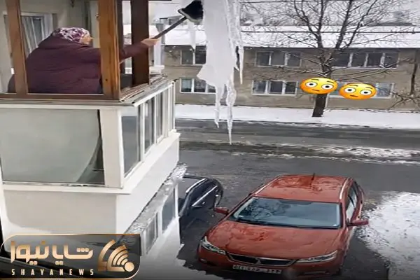 شاهد کلیپی از اتفافاتی هستید که در برف میفته که مادربزرگ با انداختن قندیل روی ماشین عجیب ترین اون هاست.