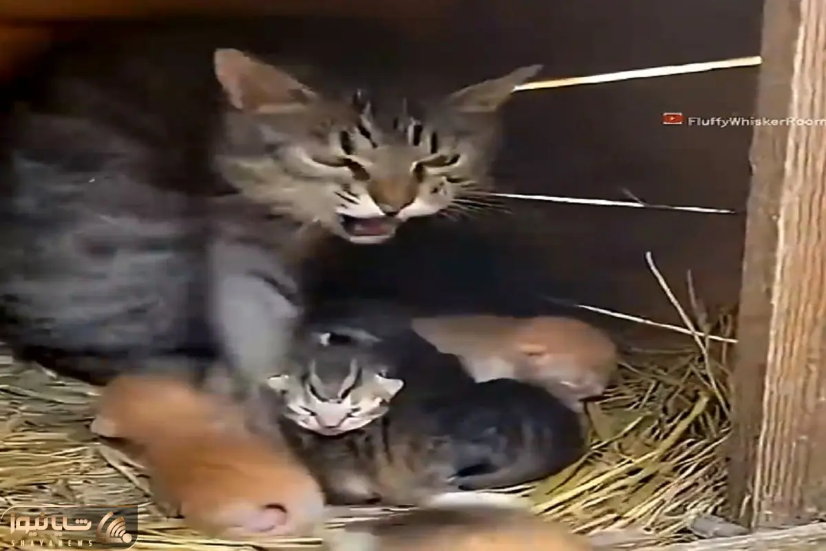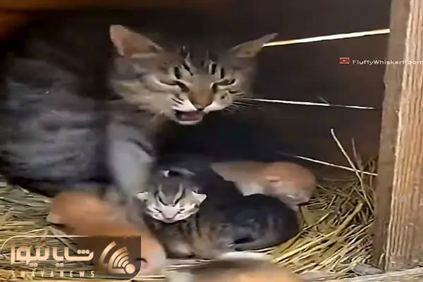 شاهد کلیپی از دفاع عجیب یه گربه از توله هاش هستید که موجب تعجبتون میشه.
