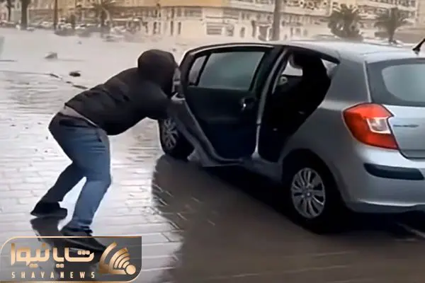 شاهد کلیپی هستید که طی اون مرد و ماشینش رو باد میبره.