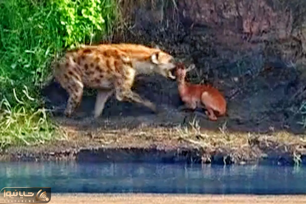 ایمپالا برای اینکه شکار نشه رفت یه جا قایم شد اما کفتار زیرک بو کشید و اومد بالای سرش