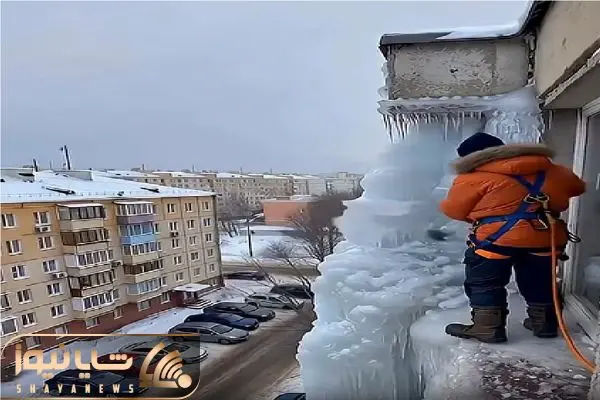 مرد احمق تو روسیه یخ ها رو با چکش میزنه ماشین مردم به چخ میره