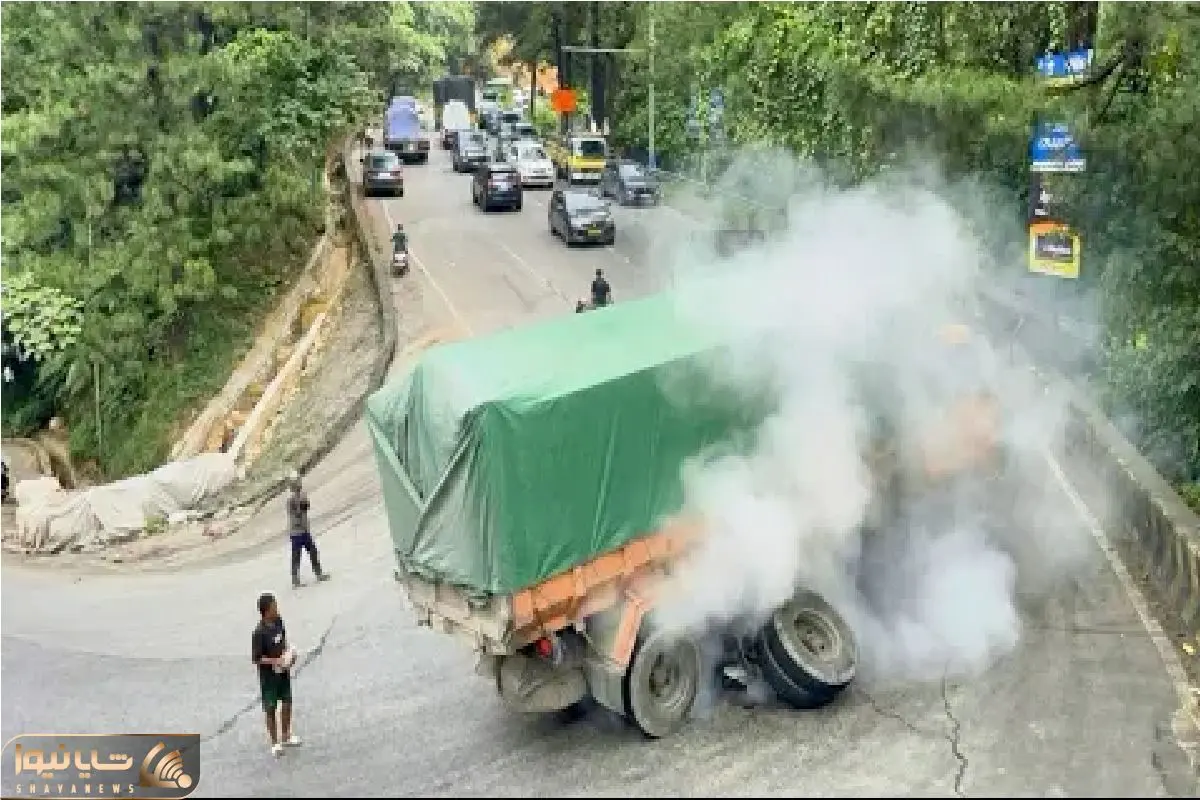 ر صحنهای وحشتناک، محور یک کامیون در مسیر شیبدار سیتینجائو لائویک میشکند و باعث توقف کامل تردد میشود.