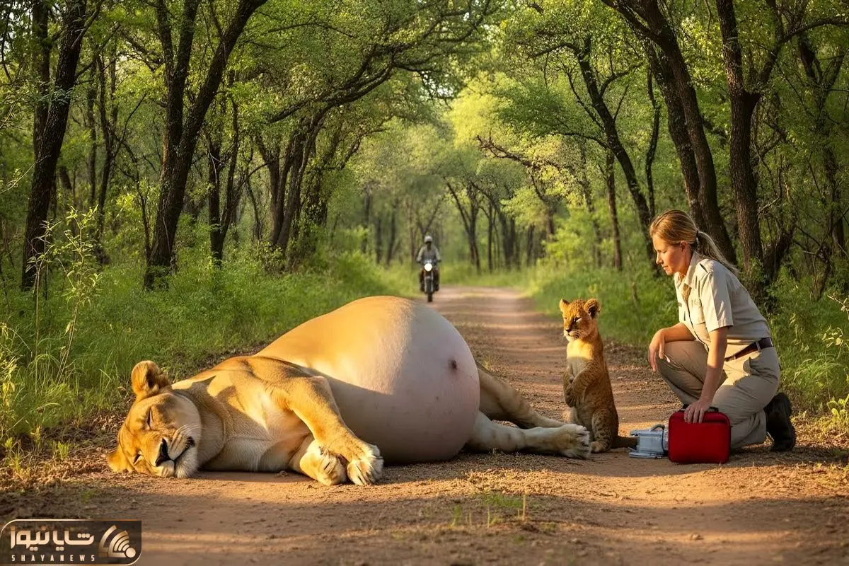 مستند حیات وحش؛ شیر حامله با حالت زار افتاده بود کنار جاده و مترصد امداد الهی