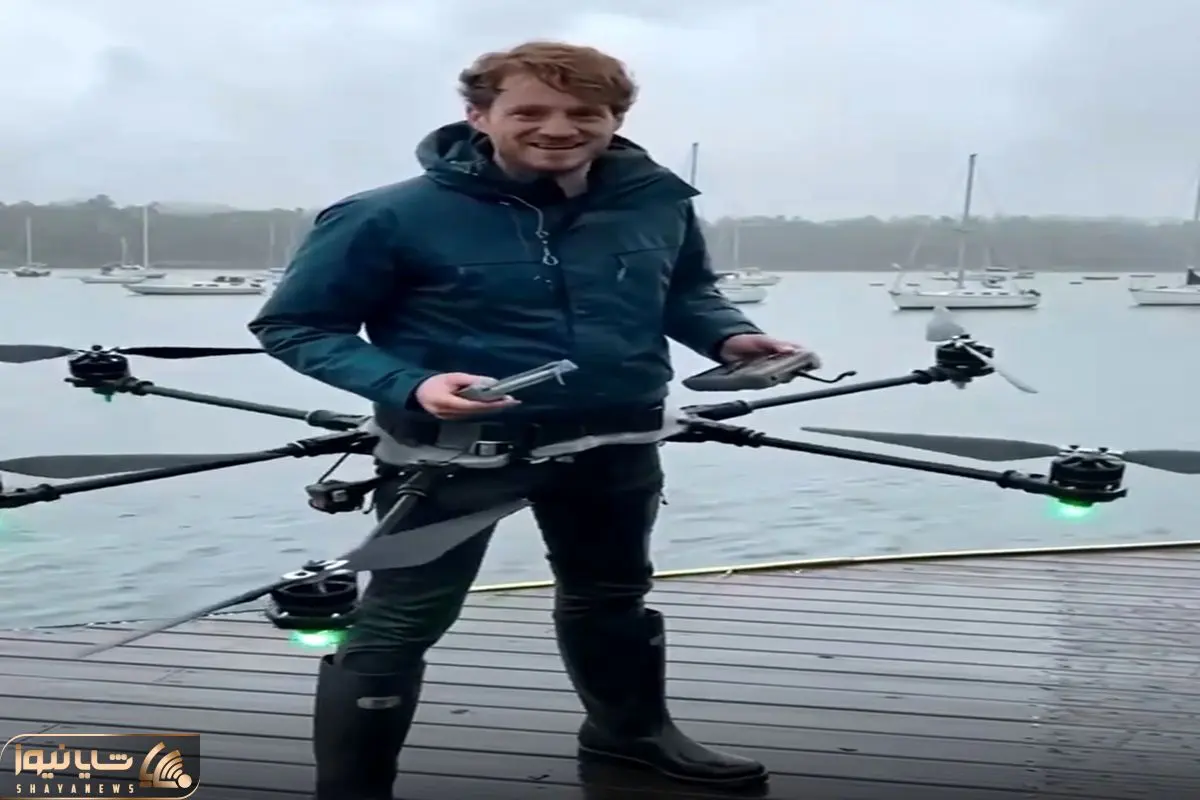 شاهد کلیپی ساختگی از یه مرد هستید که با دستگاهی که ساخته پرواز میکنه.