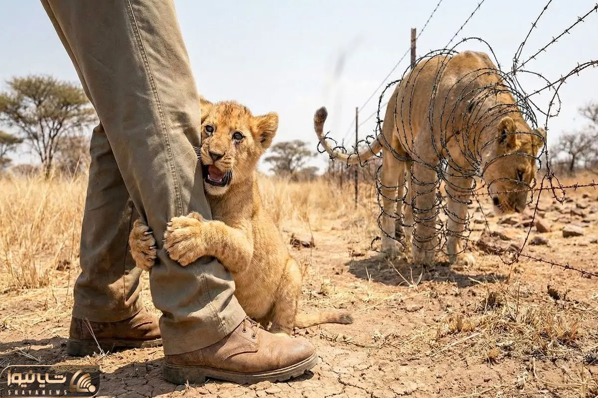 حیات وحش مصنوعی؛ شیر شجاع برای نجات مادرش از لای سیم خاردار دردناک کمک آورد