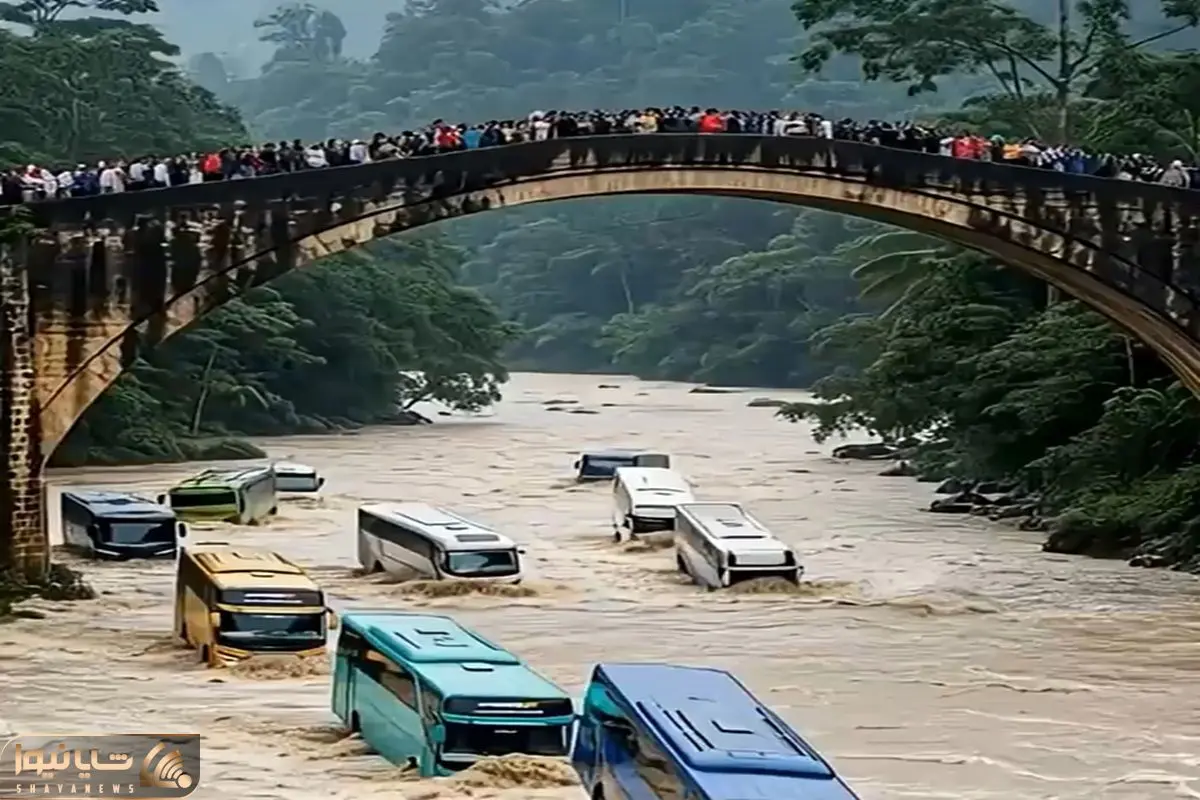 معماری طبیعت؛ مردم بالای پل داشتن به ماشینای غرق شده میخندیدن خدا گذاشت تو کاسه شون