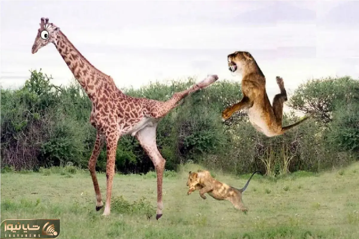 مستند حیات وحش؛ پلنگ فرار کرد بالای زرافه به شیر زبون دراز کنه