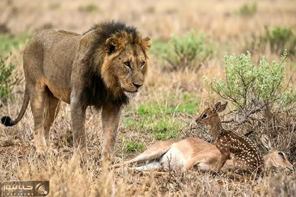 مستند حیات وحش؛ بچه آهوی یک روزه که شیر نه تنها نخوردش به فرزندی هم پذیرفتش