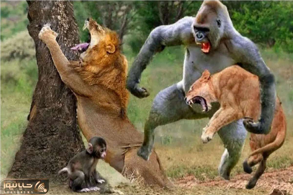 مستند حیات وحش؛ گوریل قوی شیر گرفت به باد کتک
