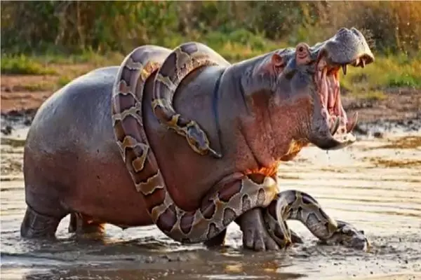 جنگ طبیعت؛ تقلای مذبوحانه اسب آبی و پیتون برای بلع و بلعیده نشدن