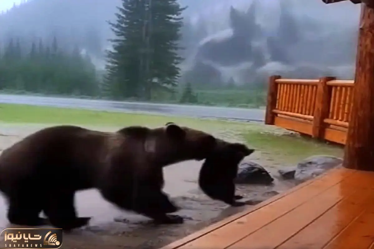 معماری طبیعت؛ خرس برا نجات بچه اش از سیبلاب سپر بلا شد