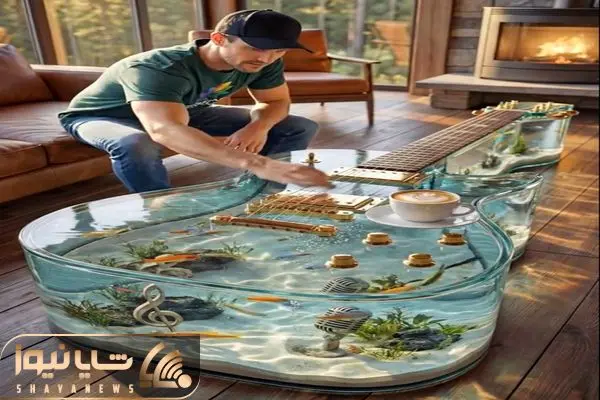 معماری خلاقانه؛ گیتار آکواریومی ساختن روش کافی میخورن ساز میزننو و ماهیا رو میبینن