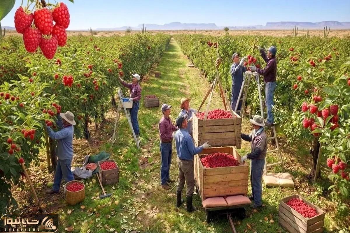 کشاورزی مدرن؛ تو بیابان تمشک کاشتن با مراقب محصول برداشت کردن اندازه خوشه انگور