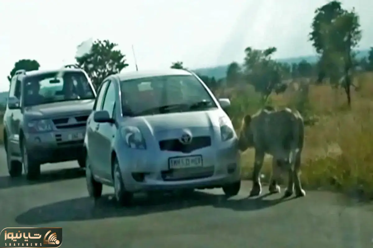 شیر وسط جاده چشمش افتاد به یه ماشین مشکی اسپورت و بهنش علاقه مند شد