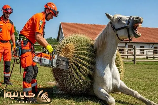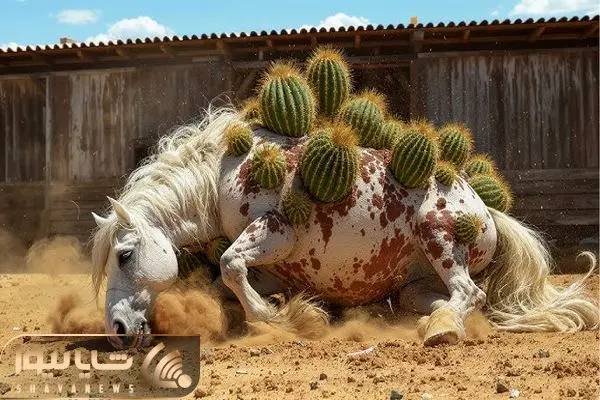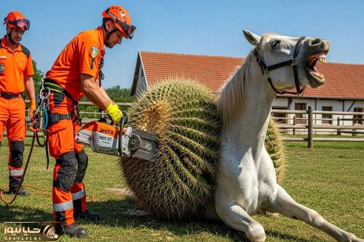 این ویدیو که با هوش مصنوعی درست شده نشان می دهد که اسب گرفتار کاکتوس های دردناک و منحوس چگونه نجات پیدا می کند