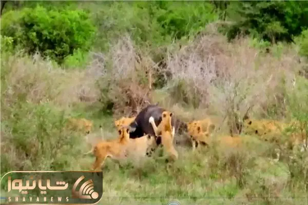 ویدئویی منتشر شده که فرار شگفتانگیز یک بوفالو را از محاصره 17 شیر گرسنه نشان میدهد صحنهای نادر از نبرد بقا و قدرت اتحاد در حیات وحش.