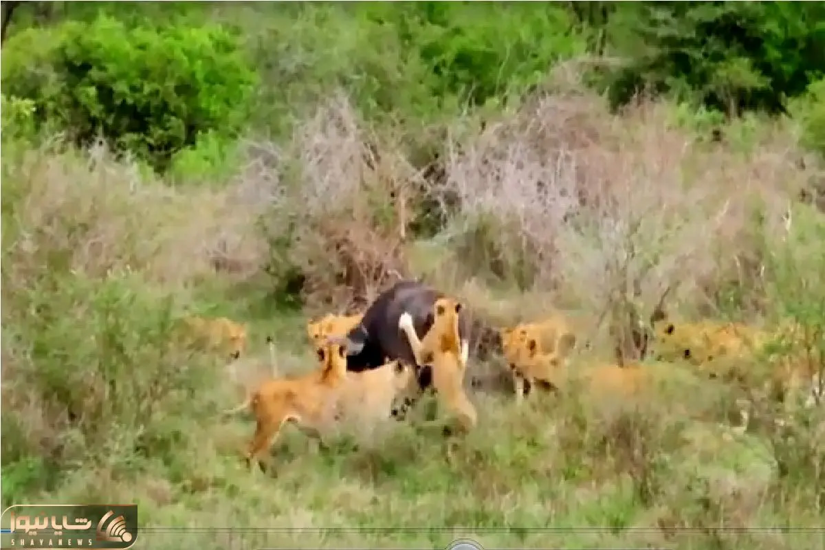 مستند حیات وحش؛ فرار معجزهآسای بوفالو از محاصره 17 شیر گرسنه