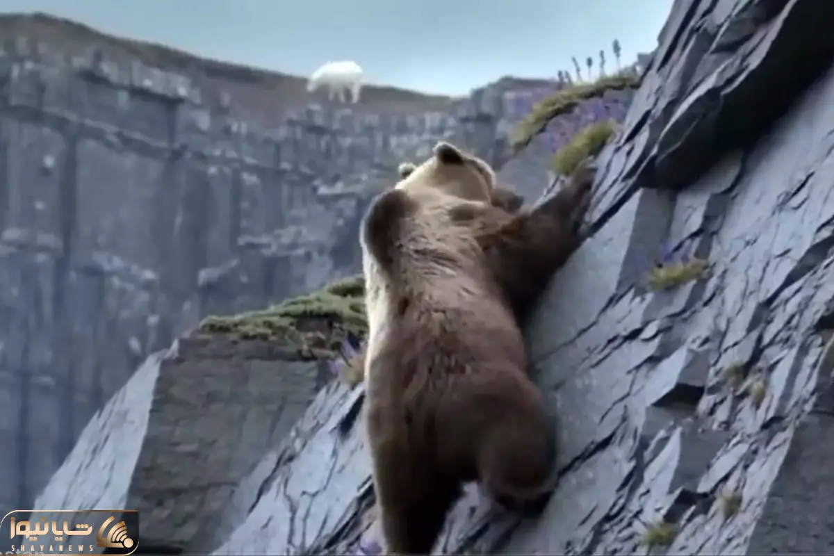 قلمرو حیوانات؛ خرس به دنبال بز کوهی صخره ها را درنوردید