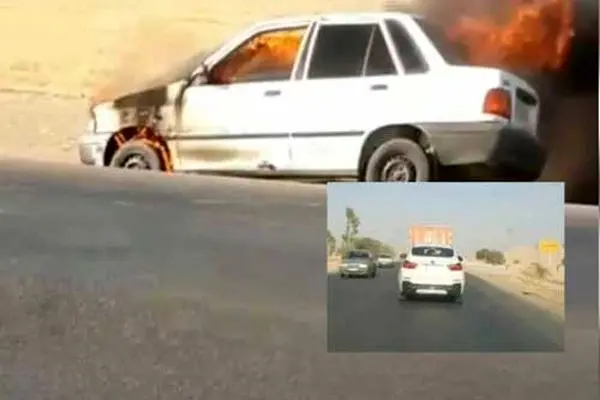 آتشسوزی یک پراید در شوشتر و رفتار متفاوت راننده BMW