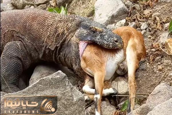 از جذابیت های حیات وحش؛ اژدهای کومودو ببینید چجوری بز رو شکار کرد و درسته از سرش بلعید!