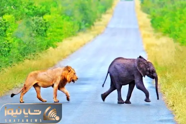 از جذابیت های حیات وحش؛ وقتی شیر با فیل دنبال بازی راه می اندازه فیل بدوو شیر بدوو