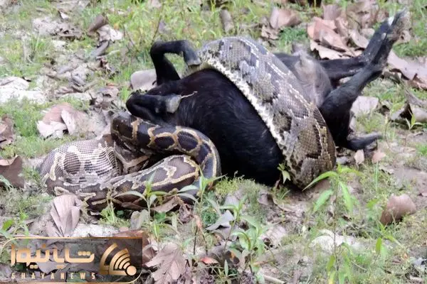 در این ویدیو می بینید که مار پیتون گوساله رو قورت داد اما مردم او رو از شکم و دهنش بیرون می کشن