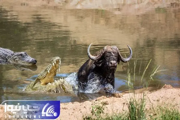 از جذابیت های حیات وحش؛ کروکودیل کله بچه بوفالوی تنها رو پیش چشم مادرش گاز گرفت