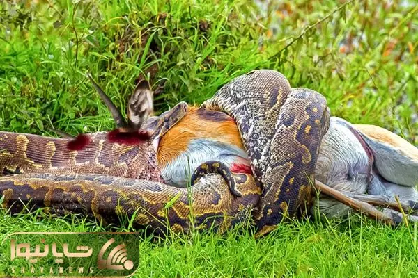 از جذابیت های حیات وحش؛ وقتی مار پیتون میخواد گوزن رو ببلعه اما شاخ تیز سوراخش میکنه