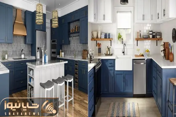 مدلهای طراحی کابینت آشپزخانه با تم آبی و سفید