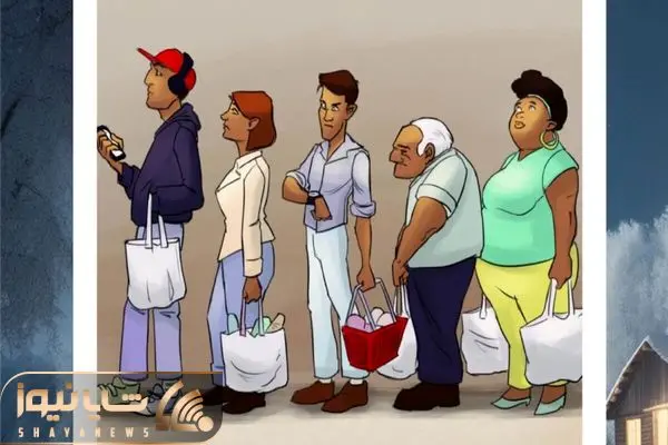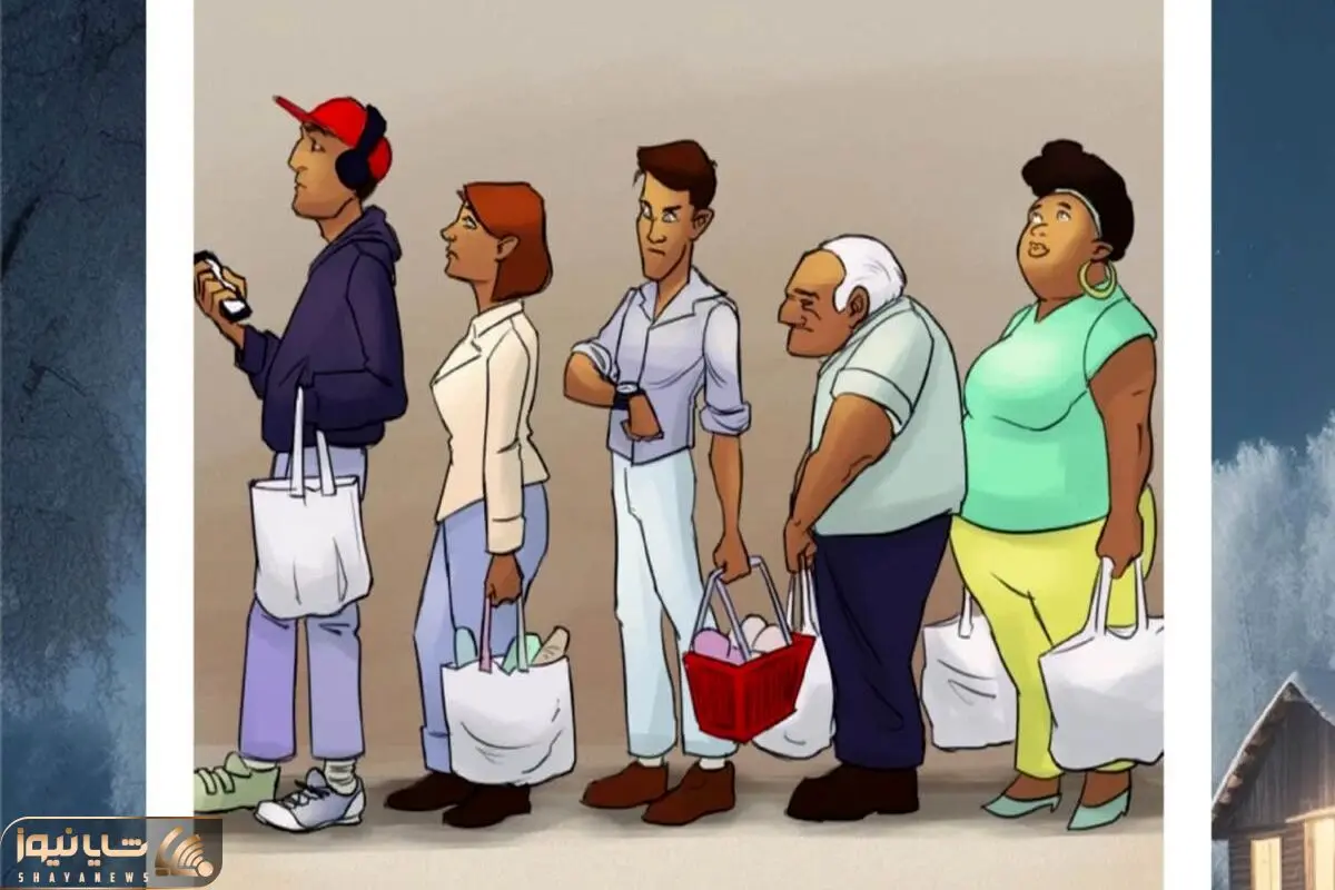 پاسخ بازی فکری اشتباه تصویری افراد در صف فروشگاه