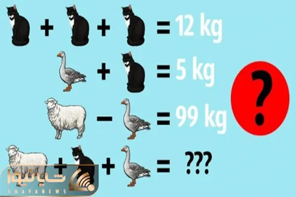 شایانیوز- معمای ریاضی: وزن کل گربه، اردک و گوسفند چقدر است؟