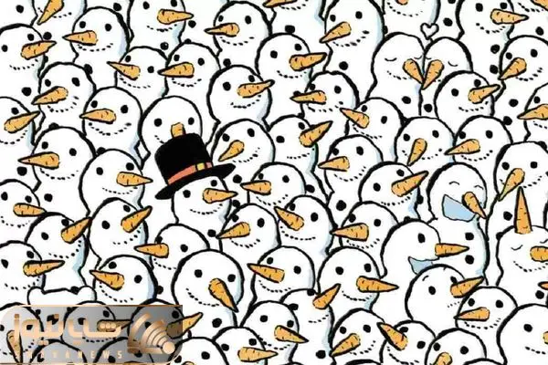 این تصویر ، آزمون نهایی مهارتهای مشاهده شماست. در میان گروهی از آدمبرفیهای یکسان، یک خرس قطبی در دیدرس شما پنهان شده است.